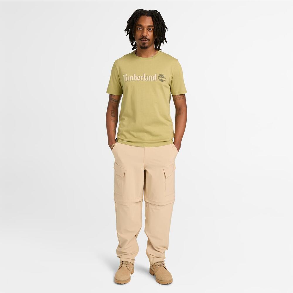 This comfy Kennebec River short sleeve T-Shirt is 100% cotton and features a cool Timberland linear logo across the front.