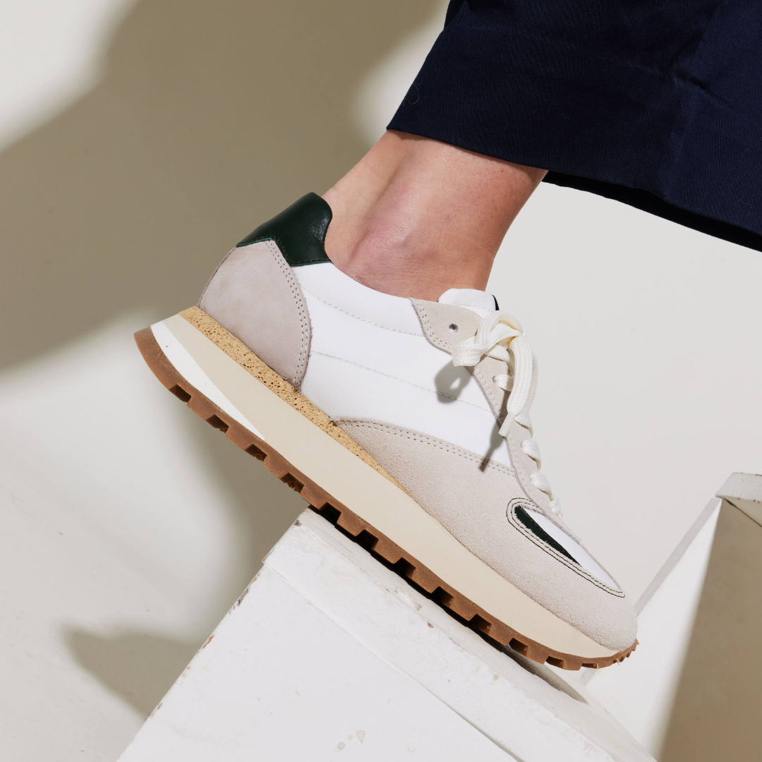 Introducing our B6s: a modern twist on 70s running sneakers by Belledonne. Handmade in Portugal with Italian leathers from Mastrotto, they feature Econyl® nylon, recycled from plastic and ocean waste, and a custom-made sole for comfort. Complete with cowhide leather and recycled mesh lining, plus a bonus pair of colored laces. Experience retro style with a contemporary edge.